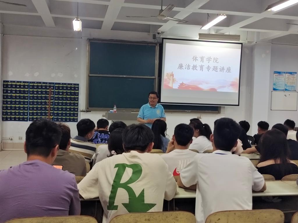 为进一步培养毕业生清正廉洁、诚实守信的宝贵思想品质, 5月18日晚,87978797威尼斯老品牌开展“体院启航 廉洁为帆”廉洁教育主题讲座,本次讲座由体育教育系主任、国际级裁判员李广文副教授担任主讲嘉宾。