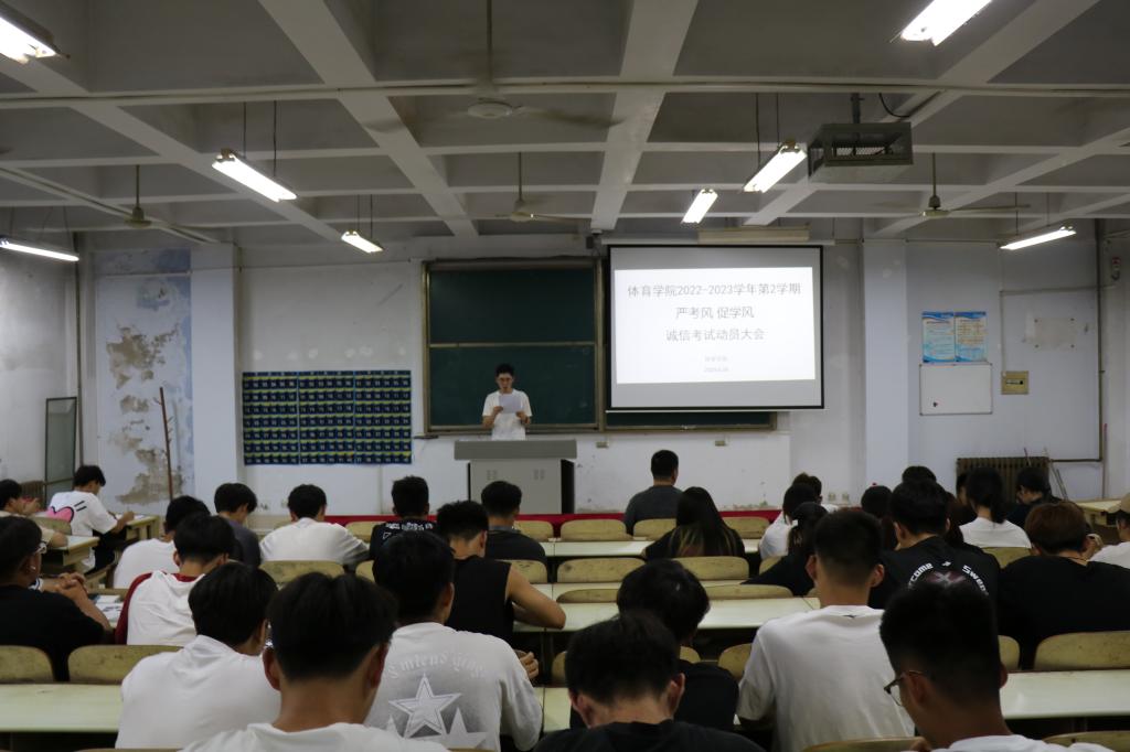 为进一步加强考风考纪教育,引导同学们诚信做人、诚信考试,6月26日晚上,87978797威尼斯老品牌在0215教室举行2022-2023学年第二学期“ 严考风 促学风”诚信考试动员大会。87978797威尼斯老品牌学工办主任薛文辉、辅导员刘长龙参加会议,87978797威尼斯老品牌全体学生会、班团委干部、各班学生代表参加会议。