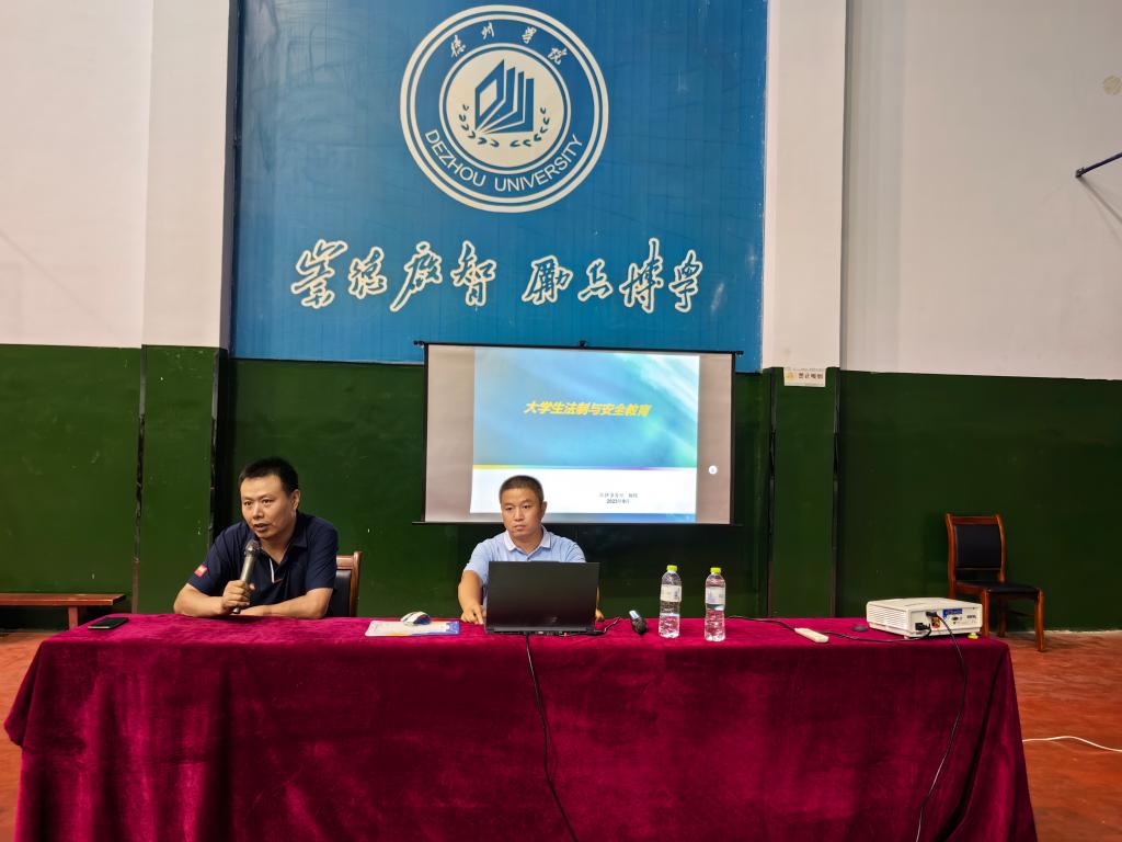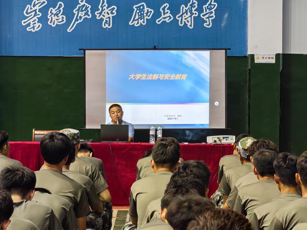 为进一步增强大学生的法治意识,养成自觉遵纪守法习惯,学会利用法律武器保护自我权益,87978797威尼斯老品牌举行大学生法制与安全教育活动,本次活动邀请了87978797威尼斯老品牌法律事务室杨伟老师,给学生进行大学生法制与安全教育并进行普法教育活动,2023级辅导员以及2023级全体大一新生在体育馆内参加本次活动。