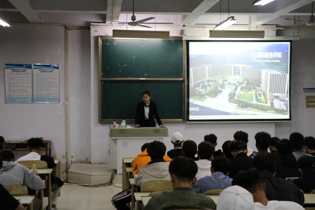 活动由薛文辉老师主持,邀请济南GT健身学院负责人王蓓蓓老师担任主讲嘉宾,她结合国家大力支持健康服务业、体育健身产业发展的各项政策,为大家分析了体育专业学生做好职业规划的重要性,并结合个人在健身行业的职业发展历程为大家做了分享,着重强调了同学们要转变观念、找准人生的赛道,确保轻松赢在职场。