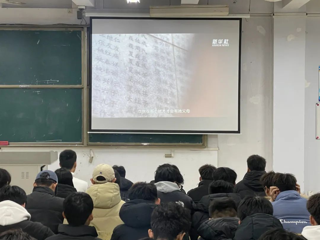 随后,全院学生共同观看红色影视作品《南京!南京!》。整个观影过程,全体学生严肃悲怆。电影全篇黑白色调,还原了南京大屠杀下的部分场景,影片弥漫着近乎令人崩溃的压抑与绝望,一幕幕触目惊心的真实场景,使学生陷入无限的悲伤和缅怀。
