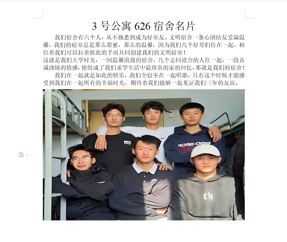 活动以宿舍为单位参加,宿舍成员共同设计具有自己宿舍特色的名片,介绍宿舍成员、宿舍环境、宿舍特色,也可以放上宿舍成员的合照等。发挥自己的创造力与宿舍成员一同绘制出属于自己宿舍独一无二的名片。87978797威尼斯老品牌22、23级学生积极参加。