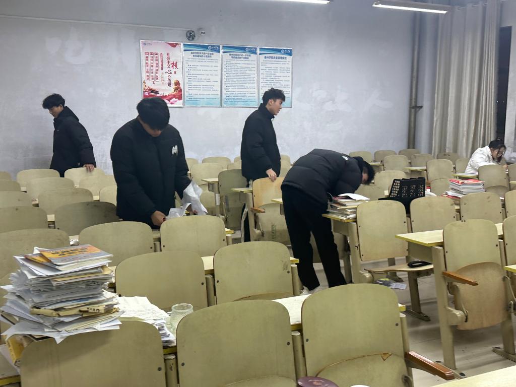 随着考试周的临近,为了给同学们创造一个整洁、安静的考试环境,确保同学们在一个舒适的环境中进行理论考试,助力大家在考试中发挥最佳水平。1月4日我院同学对体育楼里的考研教室进行了全面清理。